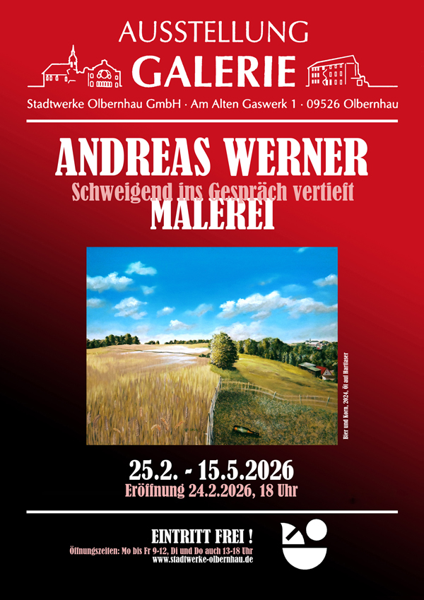 Seit seiner Neugründung 1991 richtet der Kunstverein Zwickau regelmäßig eine Werkschau seiner Mitglieder aus. In diesem Jahr werden die künstlerischen Arbeiten im Rathaus Zwickau und in der Galerie des Landkreises Zwickau im Foyer des Verwaltungszentrums Werdau als parallele Tandemausstellungen an zwei Orten gleichzeitig gezeigt.